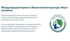Неправительственный экологический фонд имени В.И. Вернадского объявляет о старте Международного проекта «Экологическая культура. Мир и согласие».
