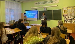 В рамках взаимодействия с Российским обществом «Знание» сотрудниками отдела краеведения библиотеки с обучающимися 9 класса (кл. руководитель В. Отморская) проведена лекция с элементами беседы «Ивнянская «мадонна» из Третьяковки».